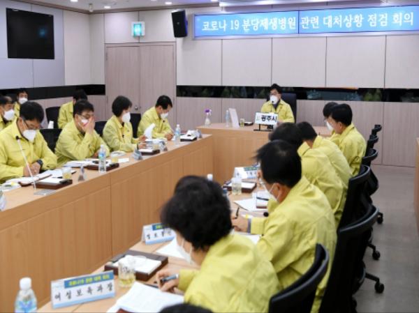 광주시는 지난 8일 시청 재난상황실에서 ‘코로나19 분당제생병원 확진자 발생’ 관련 점검회의를 개최했다.