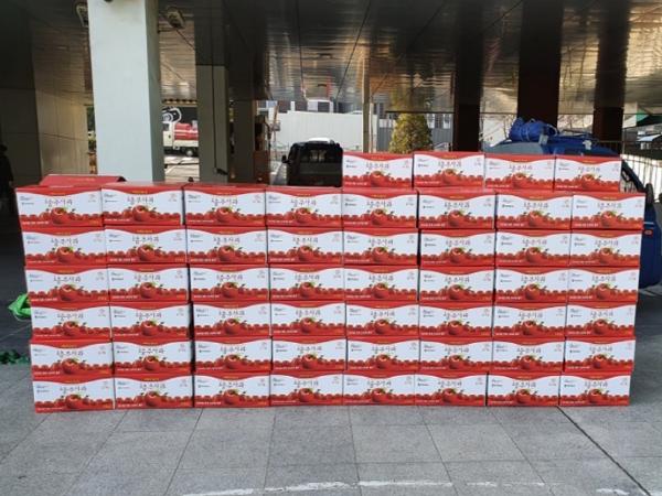 구는 기부 받은 사과즙 300박스를 동 주민센터를 통해 감염증에 취약한 고위험군 사례관리자 300여명에게 전달했다.