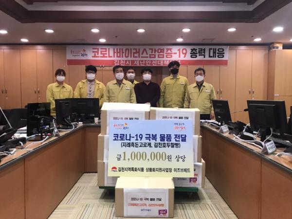 김천지역특화식품 상품화지원 사업장인 이즈브레드(덕곡동 소재)는 코로나바이러스감염증 19 극복을 위해 김천시에 시가 100만원 상당의 지례흑돈고로케와 김천호두 찰빵 100박스 빵을 기부했다.
