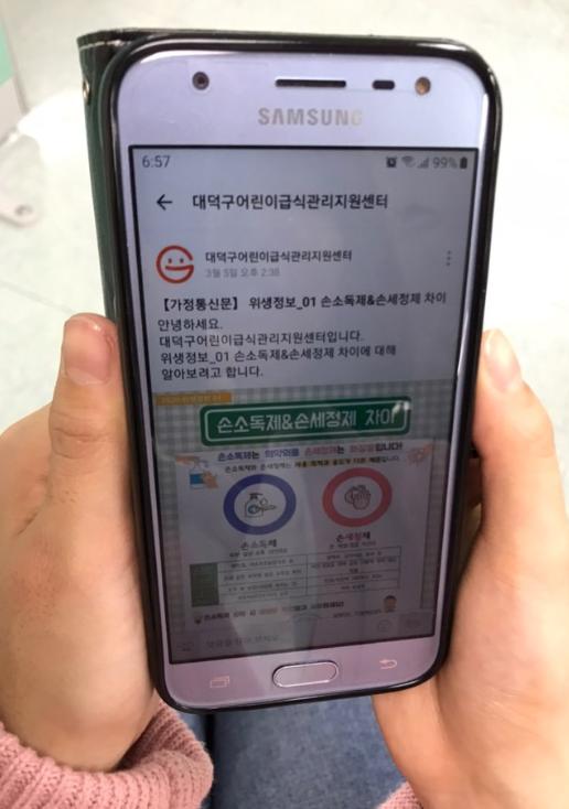 11일 센터에 따르면 어린이집, 유치원 휴원에 따라 순회방문지도, 방문교육 일정을 조정하고 어린이급식소 관리가 소홀해지지 않도록 위생·영양 관련 교육 자료를 개발해 가정통신문으로 주 1회 이상 배포하고 있으며 특히 코로나19 예방수칙에 관한 교육 자료는 관내 어린이급식소에 배포하고 카카오채널에도 게시해 일반인에게도 제공해오고 있다.