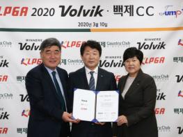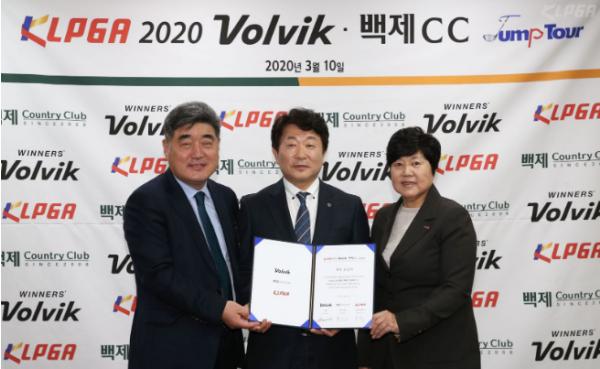 조인식에는 볼빅 문경안 회장, 백제컨트리클럽 형남순 회장, KLPGA 강춘자 수석부회장이 참석해 충남 부여에 위치한 백제컨트리클럽에서 열릴 ‘KLPGA 2020 볼빅·백제CC 점프투어’의 조인서에 서명했다.