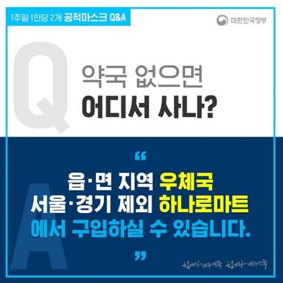 A. 읍·면 지역 우체국, 서울·경기 제외 하나로마트 에서 구입하실 수 있습니다