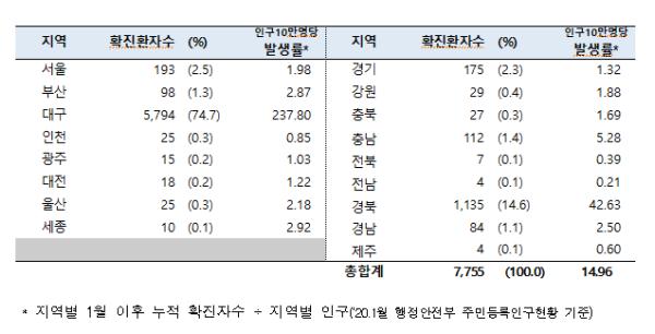 질병관리본부 중앙방역대책본부(본부장 정은경)는 3월 11일 0시 현재, 총 누적 확진자수는 7,755명이며, 이 중 288명이 격리해제 되었다고 밝혔다.