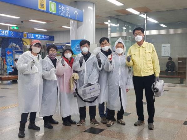 이번 방역봉사는 평택 시민사회재단 미세먼지분과 회원들이 서정리역과 서정리역 인근 상가 및 버스승강장 등 다중이용시설에서 사람들의 손길이 많이 닿는 문과 손잡이, 출입구 등을 중점적으로 소독했다.