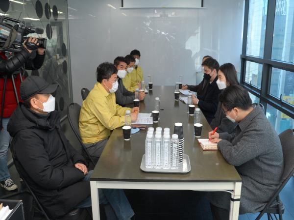 서양호 중구청장이 11일 코로나19로 피해를 입은 명동 에이랜드(이하 'A사') 사무실을 방문해 직원들의 애로사항을 청취하고 격려했다.
