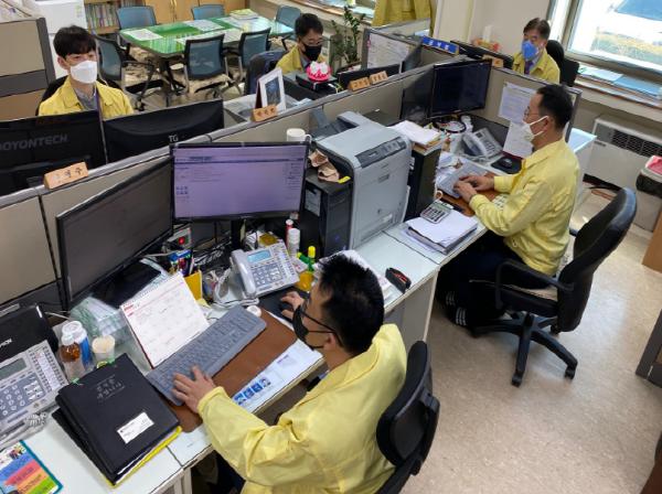 근무 시에도 마스크를 항상 착용하도록 통지했으며 업무용 외 개인택배 배송자제를 안내하고 매일 직원들이 출근하기 전에 방역소독기로 청내 방역을 실시하고 있다.