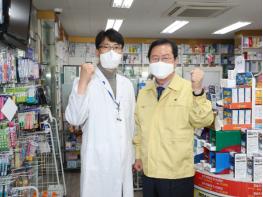 장종태 대전 서구청장은 12일, 복수동 소재 한 약국을 찾아, 박태근 서구 약사협회장과 공적 마스크 5부제 판매에 따른 현장의 목소리를 청취하는 시간을 가졌다.