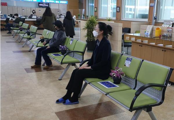 강화군(군수 유천호)은 군청 종합민원실 민원대에 투명 가림막을 설치하고 민원인 대기석 사이에는 꽃 화분을 배치해 자연스러운 분위기 속에서 사회적 거리두기 간격을 확보했다고 12일 밝혔다.