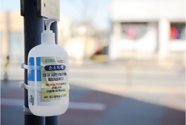 대구광역시 남구청(구청장 조재구)에서는 지난 11일 코로나19 감염 확산 차단을 위해 남구 관내 버스승강장 160개소에 고정식 손소독제를 비치했다.