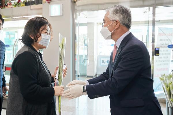 서귀포시(시장 양윤경)와 농업경영인서귀포시연합회(회장 안재홍), 여성농업인서귀포시연합회(회장 양옥매)에서는 3월 12일 서귀포시청에서 ‘코로나19 극복을 위한 사랑의 꽃 나눔’행사를 벌여 시민들에게 백합 1,400본을 민원인들에게 나눠주고 꽃 사주기 운동을 홍보하였다.
