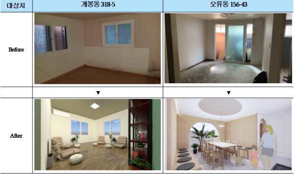 구로구 개봉동의 주택 반지하 공간은 지역 내 젊은 주부들을 위한 자기계발 공간과 주민소통방으로, 성북구 종암동의 주택 반지하 공간은 주민들이 이용할 수 있는 ‘공유주방’으로 각각 리모델링하여 운영된다.
