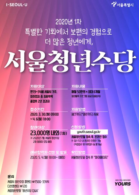 신청 기간은 3월 30일(월) 9시부터 4월 6일(월) 오후 6시까지이며, 필요한 서류를 갖춰 서울청년포털(youth.seoul.go.kr)에서 신청하면 된다.