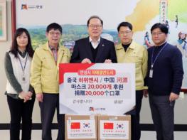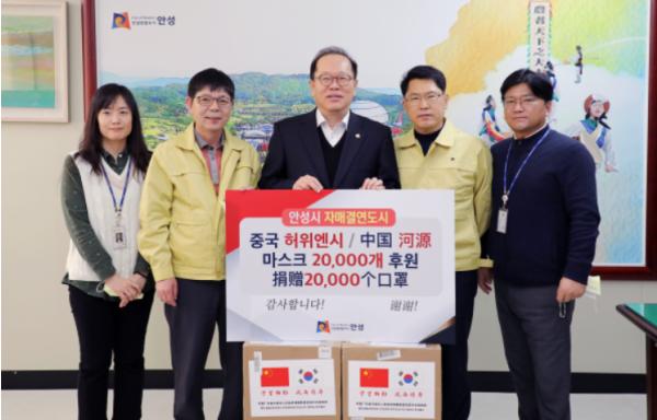 [한국4차산업신문] 안성시 자매결연도시인 중국 허위엔(河源)시가 3월 24일(화), 일회용 마스크 2만개를 안성시에 보내왔다.