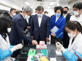 아울러, 대통령은 "위기 때 진짜 실력이 드러난다"며 "여러분은 국내에 확진자가 한 명도 없었던 올 1월 중순부터 세계 어느 기업보다 먼저 진단시약 개발에 착수했고, 인공지능을 활용해 개발 기간도 크게 단축했다"며 사의를 표했다.