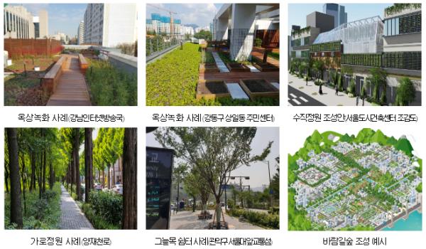 첫째, 도심·생활권역에 다양한 녹화방법을 도입하여 도시환경 개선을 위해 공원·광장·옥상·벽면 및 교통섬 등을 적극 활용하는 방안을 도입하는 등 지역별·장소별 특성을 반영한 맞춤형 녹화방식이 추진된다.