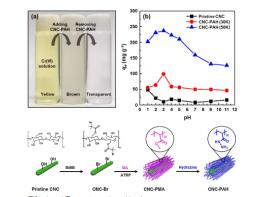 나노셀룰로오스 표면에 아민 기능기를 가진 흡착 물질을 부착시키면 6가 크롬을 환원시키거나 음전하를 띄는 6가 크롬을 정전기적 끌림(electrostatic attraction)에 의해 흡착된다.