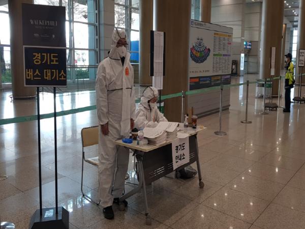 이를 위해 도는 인천공항 1·2터미널 내에 ‘경기도민 전용 공항버스 안내부스’와 별도의 대기공간을 마련, 교통국 직원 4명을 배치시켜 버스이용방법 안내 등 해외 무증상 입국자에 대한 안전한 귀가를 돕고 있다.