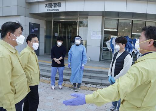 김오수 차관은 해외 입국자 임시검사시설로 이용 중인 법무연수원(충청북도 진천 소재)을 방문, 정부합동지원단 업무 지원 현황과 시설 내 코로나19 대비 상황을 점검하였다.