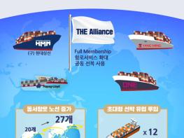 HMM은 해운재건 정책에 따른 정부의 지원을 통해 2019년 6월 세계 3대 해운동맹의 하나인 ‘디 얼라이언스’ 정회원사로 가입하였다. 이후 그간 협상을 통해 운항 노선과 선복량 등을 협의하여 기존보다 동서항로 7개 노선(20개→27개)이 확대되고, 주간 선복량도 11.3% 증가되는 것으로 합의를 이끌어내었다.
