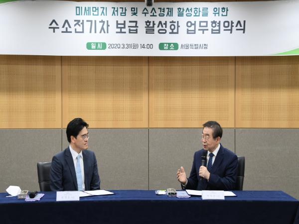 박원순 서울시장은 “이제 코로나 극복을 넘어선 포스트 코로나를 준비하기 위한 새로운 경제 패러다임을 고민할 시기이다. 현대차의 세계적인 기술과 서울시의 제도적 지원이 만나 수소산업 생태계 조성을 위한 시너지 효과를 발휘할 것으로 기대된다”며, “서울시도 공공 분야에서 수소차를 우선 보급하고, 수소차 구매활성화를 위해 다각도로 지원해 서울을 수소경제 활성화를 위한 전초기지로 육성할 계획”이라고 말했다.