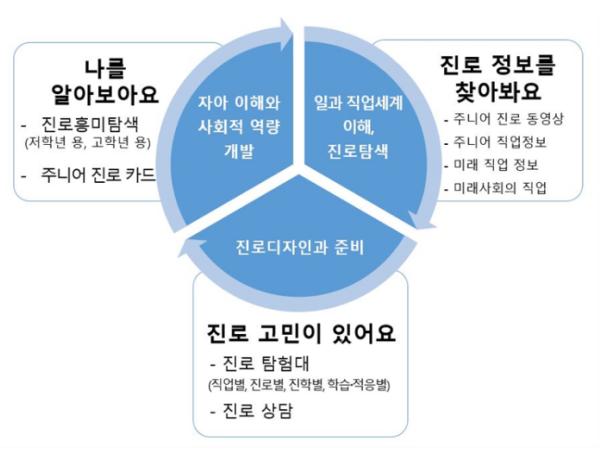 주니어 커리어넷에서 제공하는 주요 서비스는 다음과 같다.