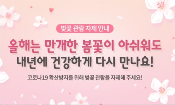 이밖에도 도 청사 인근 도로에 봄꽃 관람 자제 등 물리적 거리두기 캠페인 동참을 호소하는 현수막과 입간판을 설치했다.