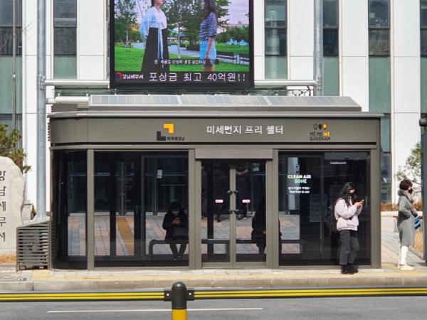 성동구 : 미세먼지 저감 수종을 식재하고 에어커튼, 공기청정기 등이 설치된 ‘미세먼지 쉼터’를 조성해 공기질 관리는 물론 시각적 차단효과까지 기대된다.