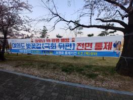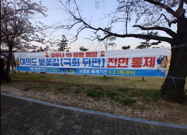 앞서 구는 코로나19 감염 확산 방지를 위해 ‘2020 영등포 여의도 봄꽃축제’를 16년 만에 취소하고, 벚꽃 개화시기에 맞춰 여의도 봄꽃길에 대해 차량 및 보행자 통행 제한에 나섰다.
