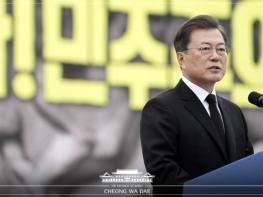 이에 대통령은 민주화운동 관련 단체장 등과 함께 행사장에 입장했고 헌화 및 분향을 하며 대한민국 민주주의를 위해 항거한 모든 민주영령들을 기억하고 추모하는 시간을 가졌다.