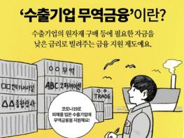 ‘수출기업 무역금융’이란 수출기업의 원자재 구매 등에 필요한 자금을 낮은 금리로 빌려주는 금융 지원 제도예요.