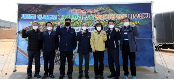 아울러, '20년 11월에 새만금 내 핵심 기반시설 중 처음으로 완공되는 동서도로변과 주변 공원에 나무를 심어 광역녹지축과 거점녹지 공간을 확보하였다.