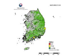 산불예측.분석센터에서 단기 지역별 산불위험지수를 예측한 결과, 4월 23일∼25일은 전국 최고기온이 17∼25℃까지 상승하고 건조한 북서풍의 영향으로 산불발생 위험이 ‘높음’(100점 중 66∼85)으로 분석했다.