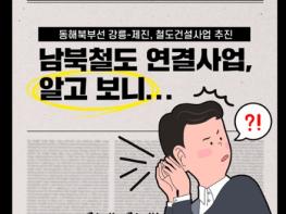 그런데 말입니다. 정부는 이 사업을 왜 추진할까요? 지금부터 동해북부선 연결사업과 남북철도 연결 사업의 비밀을 밝힙니다!”