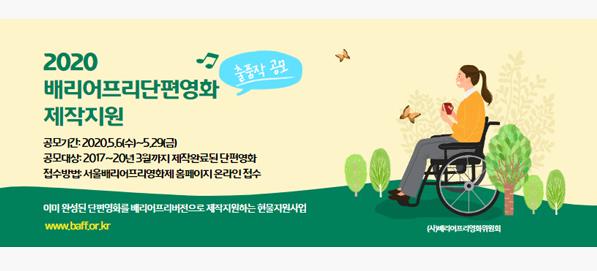 ‘2020 배리어프리단편영화 제작지원’은 기 제작된 단편영화를 배리어프리버전으로 제작지원하는 현물지원사업으로 오는 5월6일부터 29일까지 서울배리어프리영화제 홈페이지(www.baff.or.kr) ‘출품 및 공모’ 페이지를 통해 온라인접수로 진행된다.