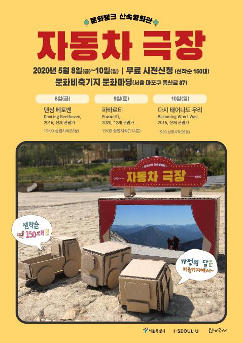 ‘문화비축기지 산속영화관: 자동차극장’은 코로나19로 인한 사회적 거리두기 장기화로 실내에 있는 시간이 늘어나면서 몸과 마음이 지쳐있는 시민들에게 공원에서 안전하게 즐길 수 있는 문화예술 영화 세편을 상영한다.