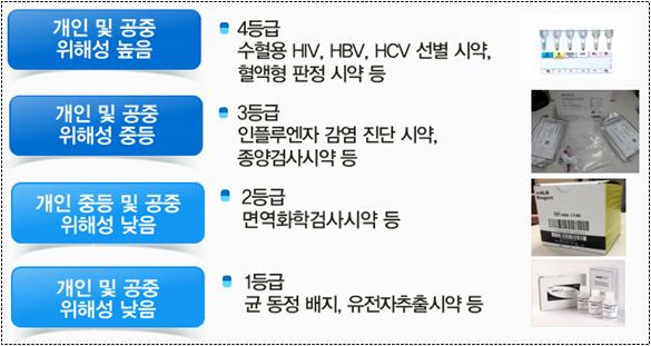 (체외진단의료기기 등급분류) 안전관리 수준이 높은 순서에 따라 4등급부터 1등급까지 4개 등급으로 분류