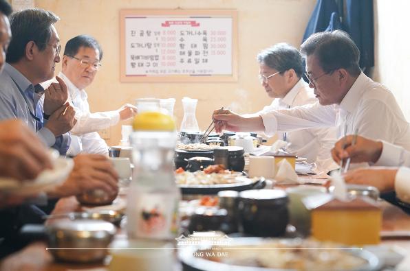 [한국4차산업신문] 문재인 대통령은 5월1일 점심시간, 수석·보좌관들과 함께 청와대 인근 삼청동의 식당을 찾았다. 점심은 소상공인, 자영업자들이 어려운 상황에서 가급적 주변 식당을 이용해 달라는 독려 차원이다.