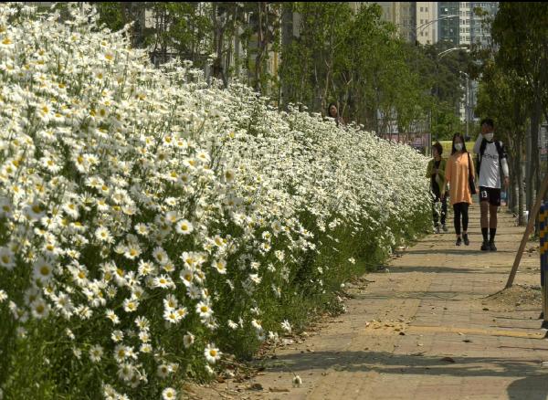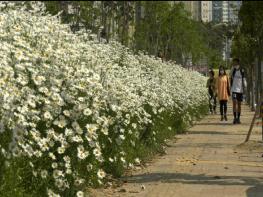 [한국4차산업신문] 양산시가 ‘양산시민 건강숲’(부산대 유휴부지) 경사면에 식재한 야생화 샤스타데이지가 개화해 시민들의 눈길을 사로잡고 있다.