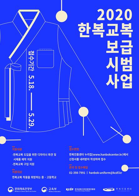 문화체육관광부(장관 박양우)와 교육부(사회부총리 겸 장관 유은혜)는 5월 6일(수)부터 29일(금)까지 한복교복을 시범적으로 보급할 중·고등학교 20개교를 공모한다.