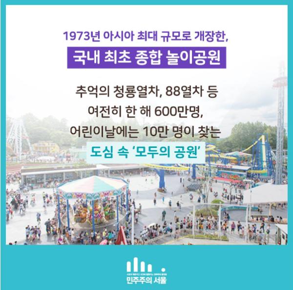 어린이 대공원(광진구 능동로)은 1973년에 개장한 국내 최초 종합 놀이공원으로, 한해 600만명, 어린이날에는 10만명이 찾는 도심 속 ‘모두의 공원’으로 역할을 톡톡히 해오고 있다. 그러나 개장 당시 정문과 함께 기와집으로 설계된 ‘팔각당’은 현재 용도가 특정되지 않은 상태로, 서울시에서는 진행 중인 ‘어린이대공원 재조성 기본계획 용역’을 통하여 팔각당의 다양한 활용방안을 놓고 검토 중에 있다.