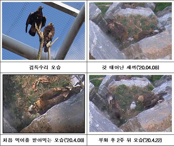 국립생태원 검독수리 아종 한 쌍은 지난해 말부터 번식행동을 시작하여 올해 2월 25일 총 2개의 알을 낳았다.