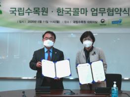 국립수목원(원장 이유미)은 한국콜마(기술연구원장 강학희)와 11일 생물다양성 보전과 국민의 인식 증진을 위한 상호 협력을 골자로 하는 양자 간 포괄적 협력 양해각서(MoU)를 체결하였다