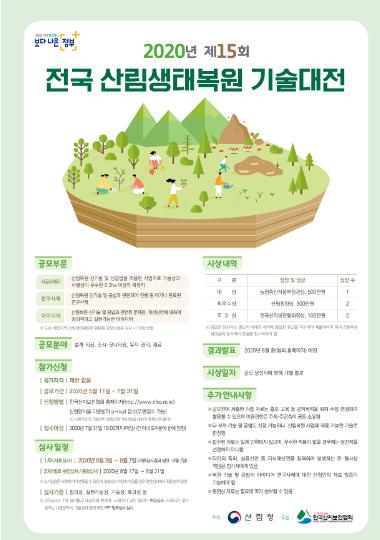 공모 부문은 산림생태복원 신기술 적용 사례지와 신기술 연구사례 및 아이디어 중에서 선택 가능하다. 참가 자격은 누구나 참가할 수 있으며, 공모 기간은 5월 11일부터 7월 31일까지이다.