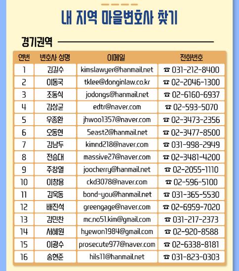 내 지역 마을변호사를 확인하고 상담 받으세요!