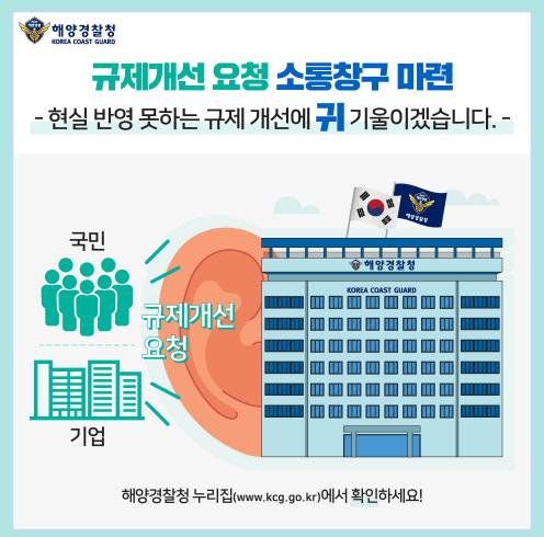 해양경찰청(청장 김홍희)은 개선 필요성이 있는 규제에 대해 국민과 기업의 목소리를 듣는 소통 창구를 누리집에 마련했다고 12일 밝혔다.