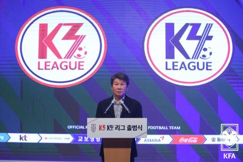 이어 그는 “협회장 취임 이후 노력 끝에 K3·4리그를 출범하게 됐다. 이는 단순히 하나의 리그가 시작되는 것이 아니라 대한민국에서도 진정한 축구 생태계가 만들어진다는 것을 의미한다. 전문 선수부터 동호인까지 모두가 디비전 시스템이라는 큰 틀 속에서 공존하게 될 것”이라고 말했다.