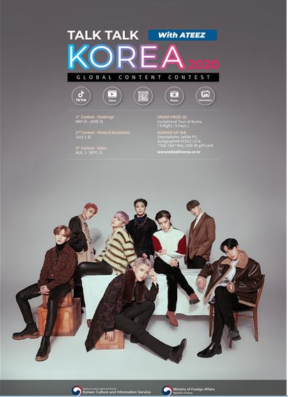 문화체육관광부(장관 박양우) 해외문화홍보원(원장 직무대리 유병채,해문홍)은 외교부(장관 강경화)와 함께 5월 15일(금)부터 9월 15일(화)까지 국내 최대 한류 콘텐츠 공모전 ‘토크토크코리아(Talk Talk Korea) 2020’을 진행한다.