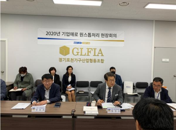[한국4차산업신문] 경기도가 ‘기업애로 원스톱처리 현장회의’를 15일 포천시 군내면 소재 용정일반산업단지에 위치한 가구공동 전시·판매장 ‘마홀앤’에서 갖고, 포천지역 가구 기업들의 경영애로 해소를 위한 현장행보에 나섰다.