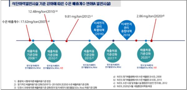 정부는 2008년부터 석탄화력발전시설에 대해 5차례에 걸쳐 먼지 및 미세먼지 원인물질인 질소산화물, 황산화물의 배출허용기준을 강화했다.