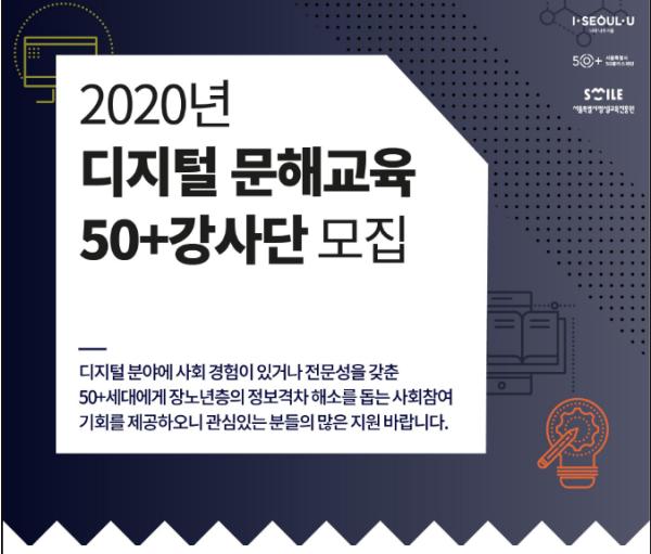 ‘디지털문해교육 50+강사단’은 총 35명을 선발하며, 디지털 역량을 갖춘 만 50~67세의 서울 시민이라면 누구나 지원할 수 있다.
